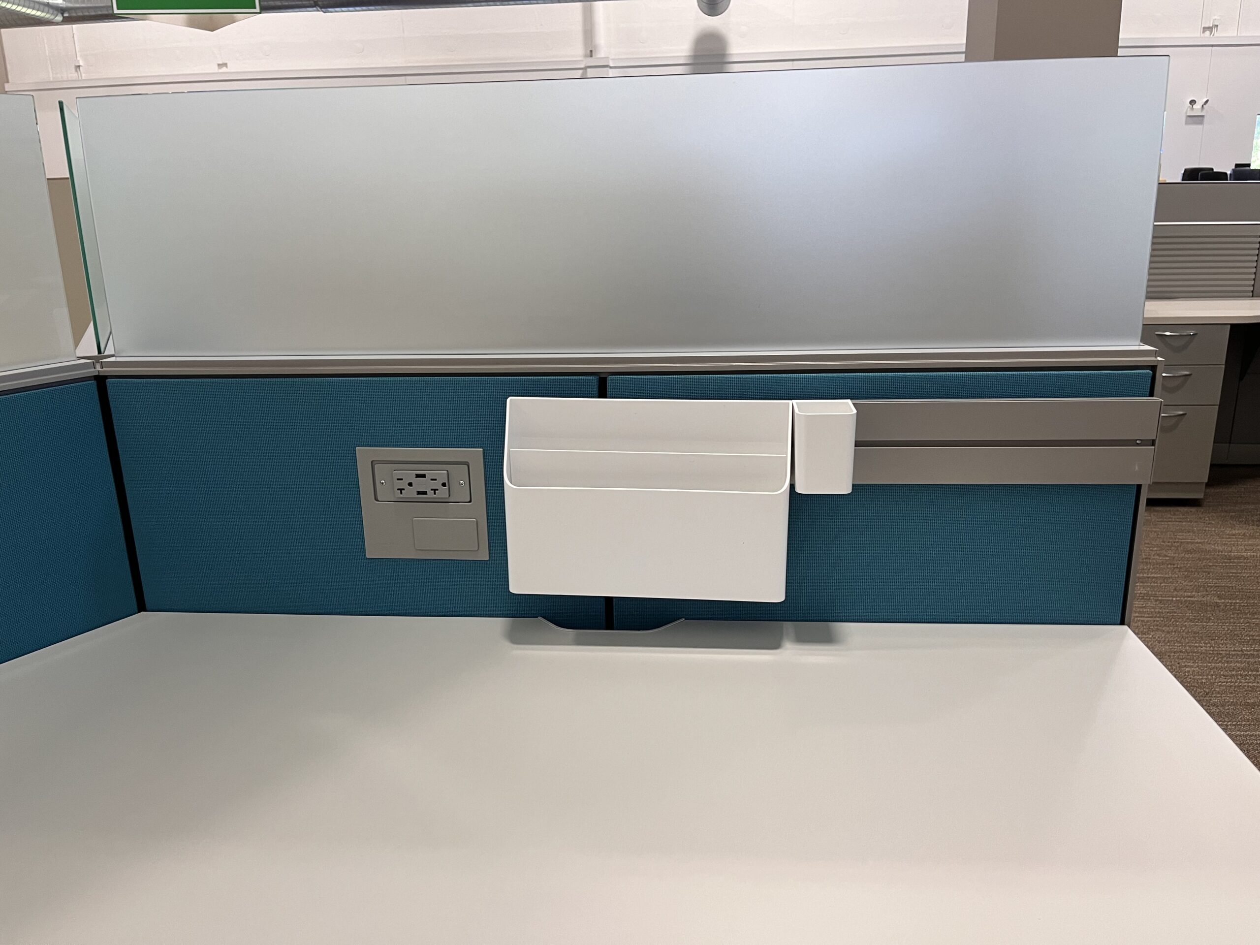 4×4 Haworth Compose 120 Degree Champagne Turquoise Workstations LVL 0
