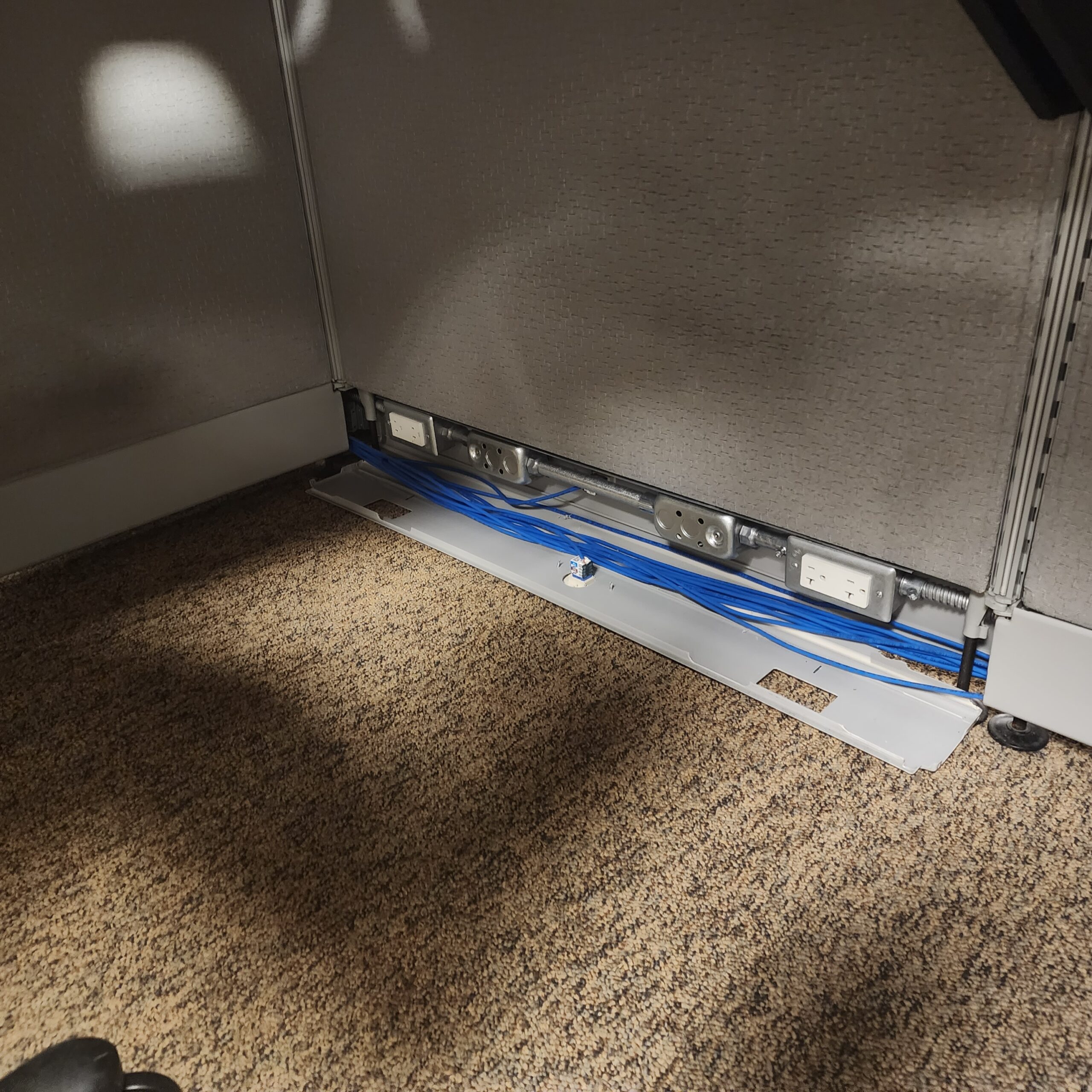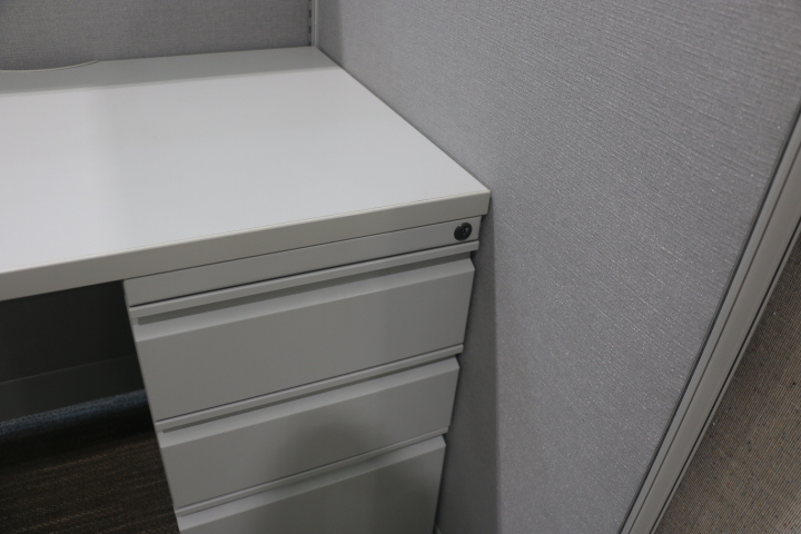 Workstations are [Blended] and consist of original manufacturer’s paint, and laminate, with NEW upholstery on Panels.