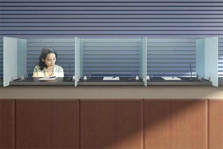 - Desk privacy panels extend 8 inches past desk or countertop surfaces for added barrier protection.