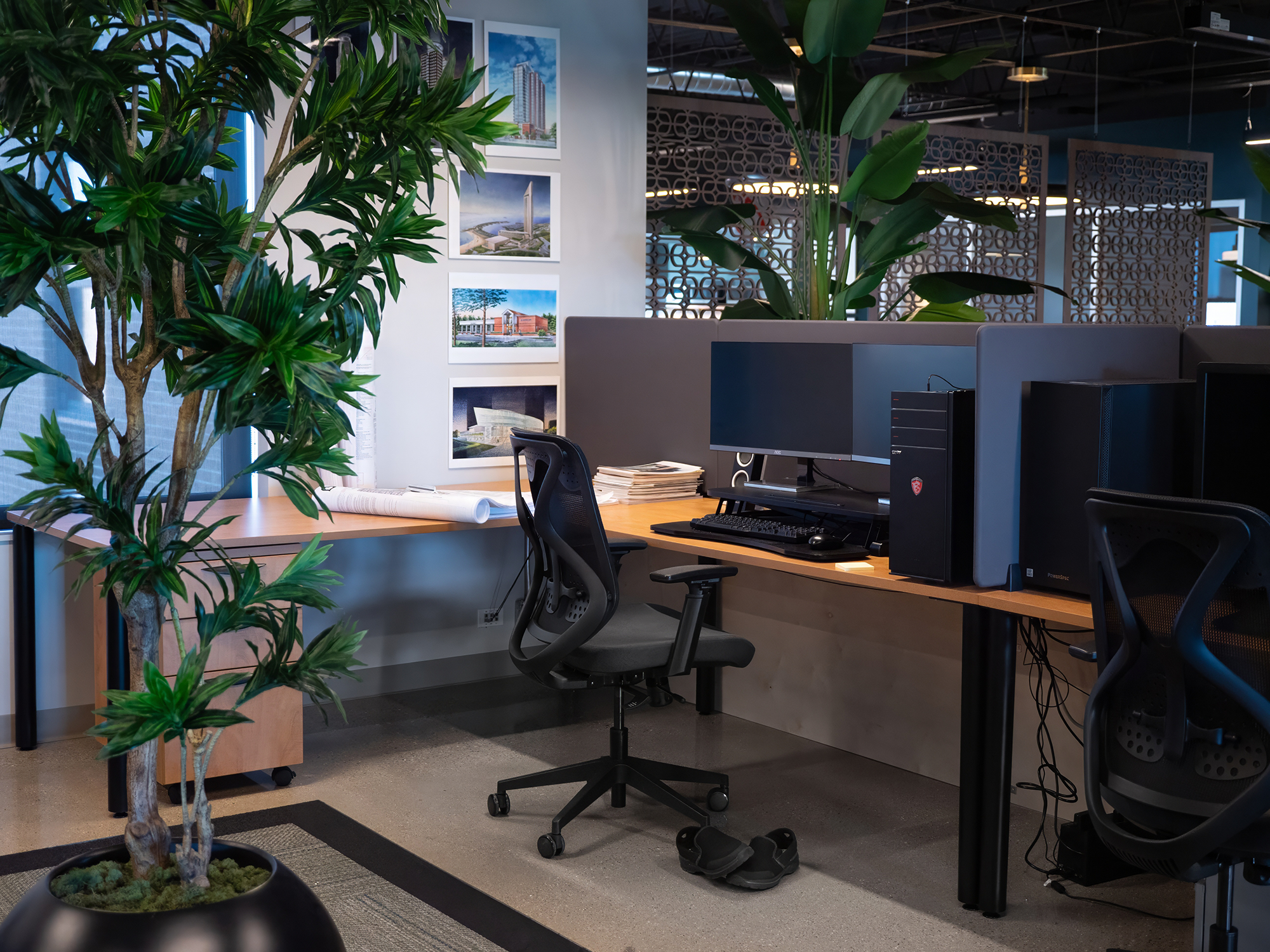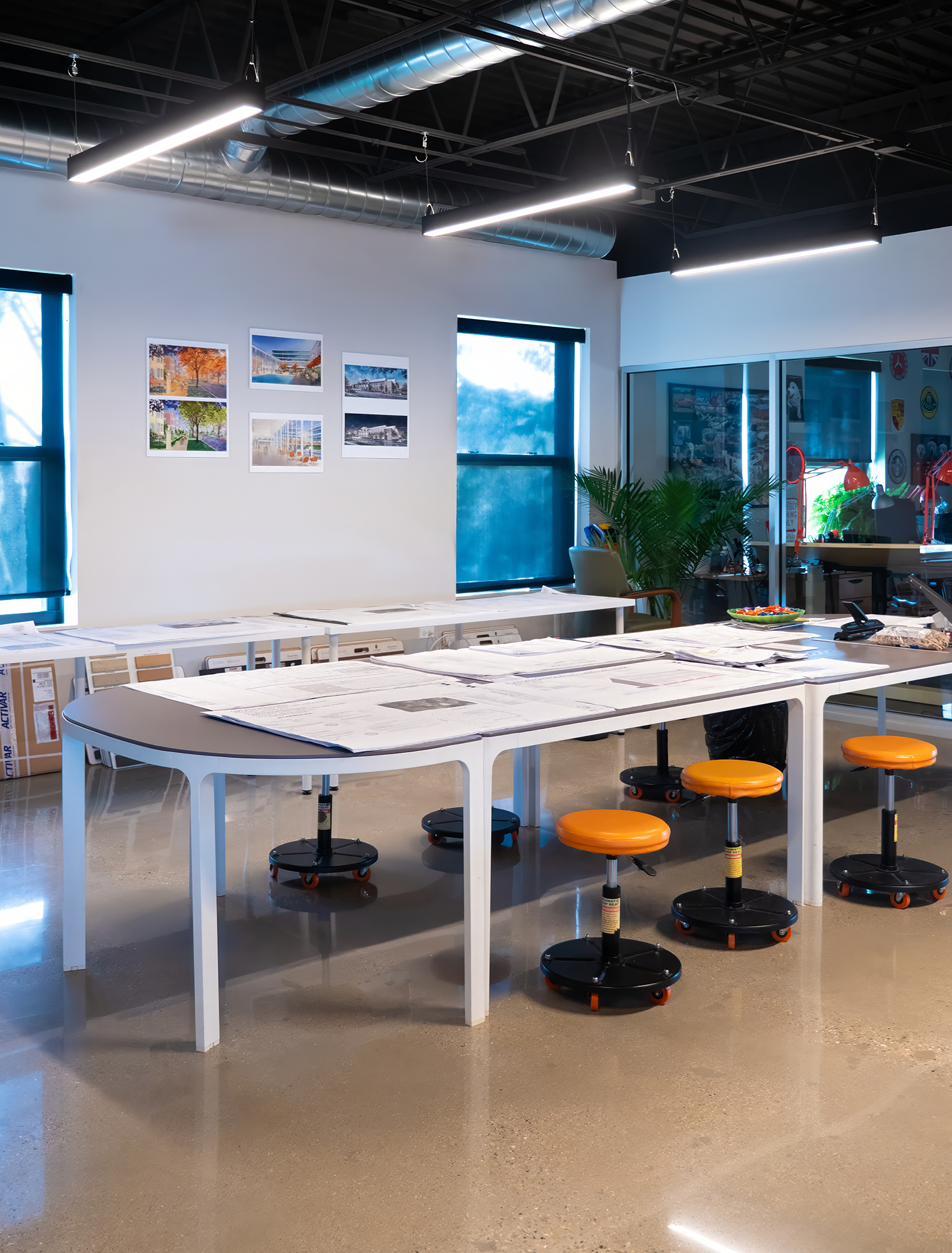 Design Studio 24 came to us with a clear vision: to create a warm, inviting industrial environment for their new office. The goal was to seamlessly blend new and used furniture, keeping within budget while infusing the space with character and charm.